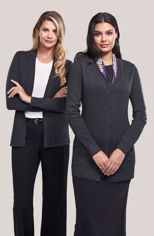 V-Neck Long Sleeve Button Front Cardigan with Hemmed Waistband – 4005