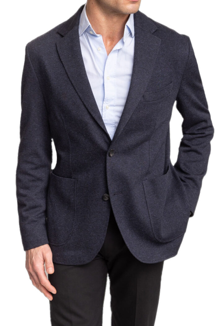 Tailored for comfort from a soft, stretchy knit, this herringbone-patterned sport features a touch of breathable cotton and a relaxed look that complements any semiformal outfit.