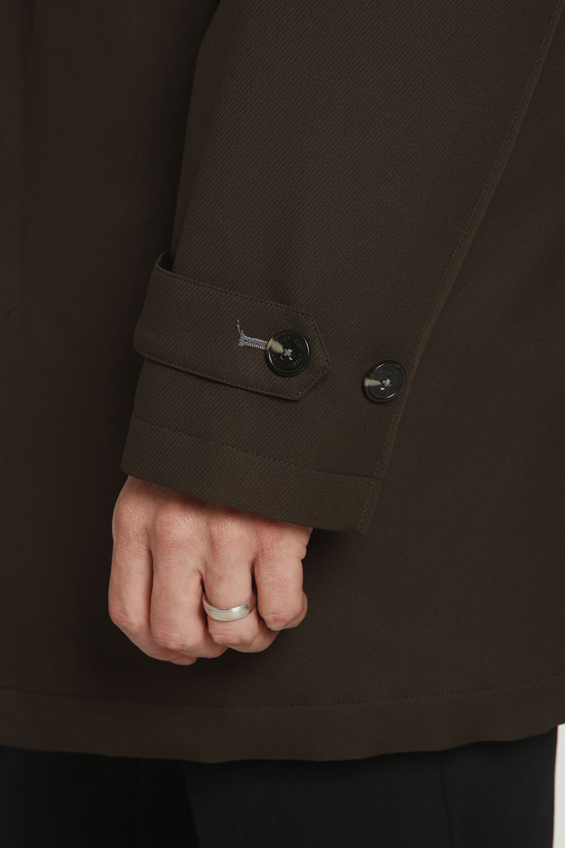 - Zip-out, lightweight polyfill warmer in coordinated linings Button and snap front